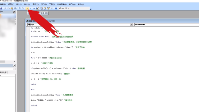 MsgBox "共删除:" & 80000 - k & "行" '弹出提示