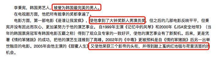 甚至在豆瓣电影的简介中,李秉宪还被誉为韩国最完美的男人。