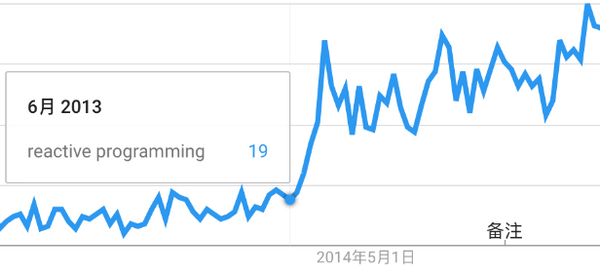 从Google搜索趋势上可以看出,从2013年6月份开始,反应式编程的搜素趋势出现了爆发式增长,原因是2013年6月反应式宣言发布了第一个版本。