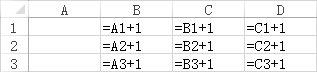 为了直观地了解什么是反应式,我们先从一个大家都比较熟悉的类比开始。首先打开Excel,在B、C、D三列输入如下公式: