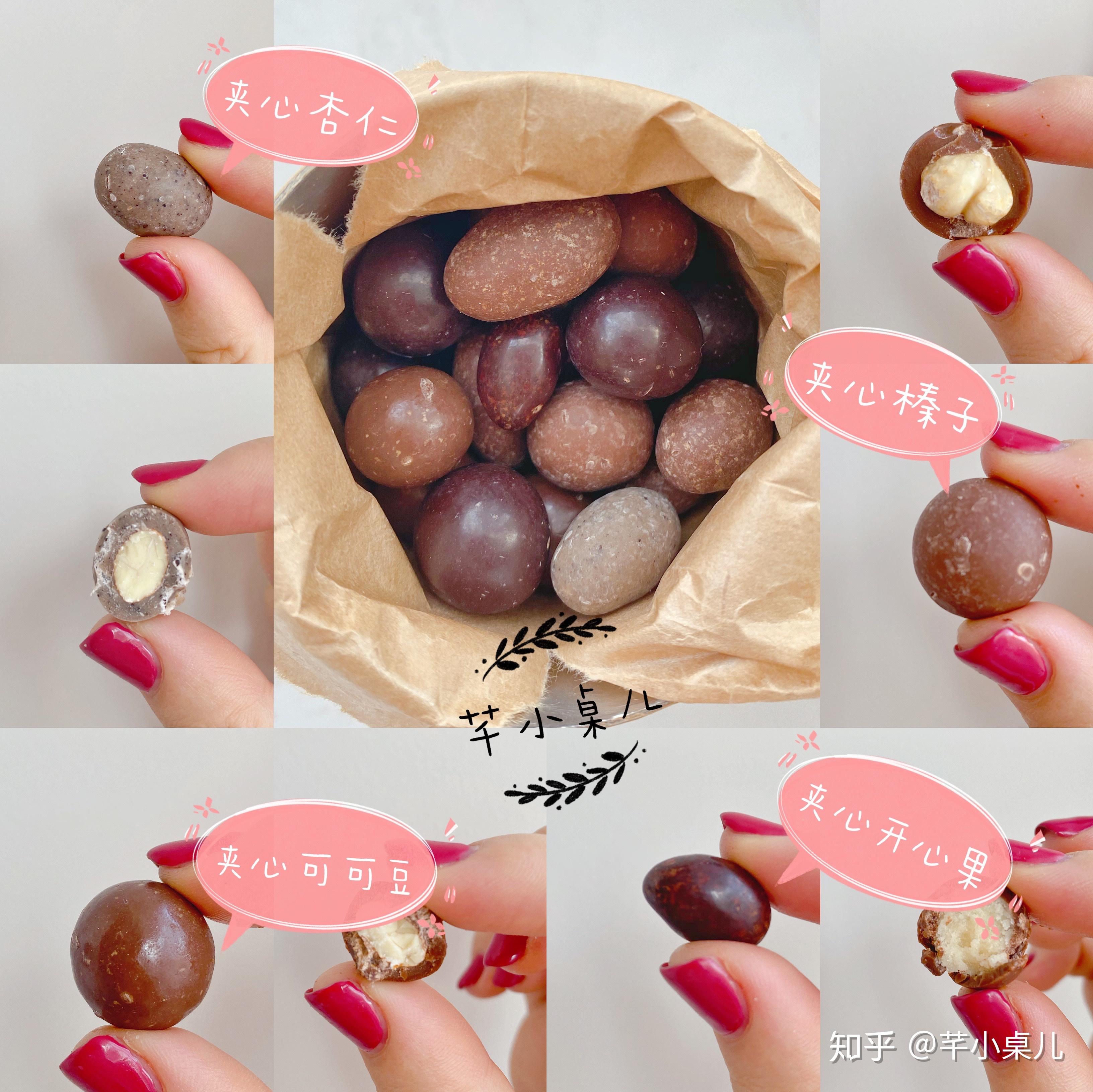 我一个个都尝了(血糖飙升的一天),很有趣,每一颗咬开都是一个惊喜,味道没有过甜的,都尝得出果仁本身的坚果香,又能跟外面的巧克力涂层互相激发,又脆又香又有回味,非常好吃!