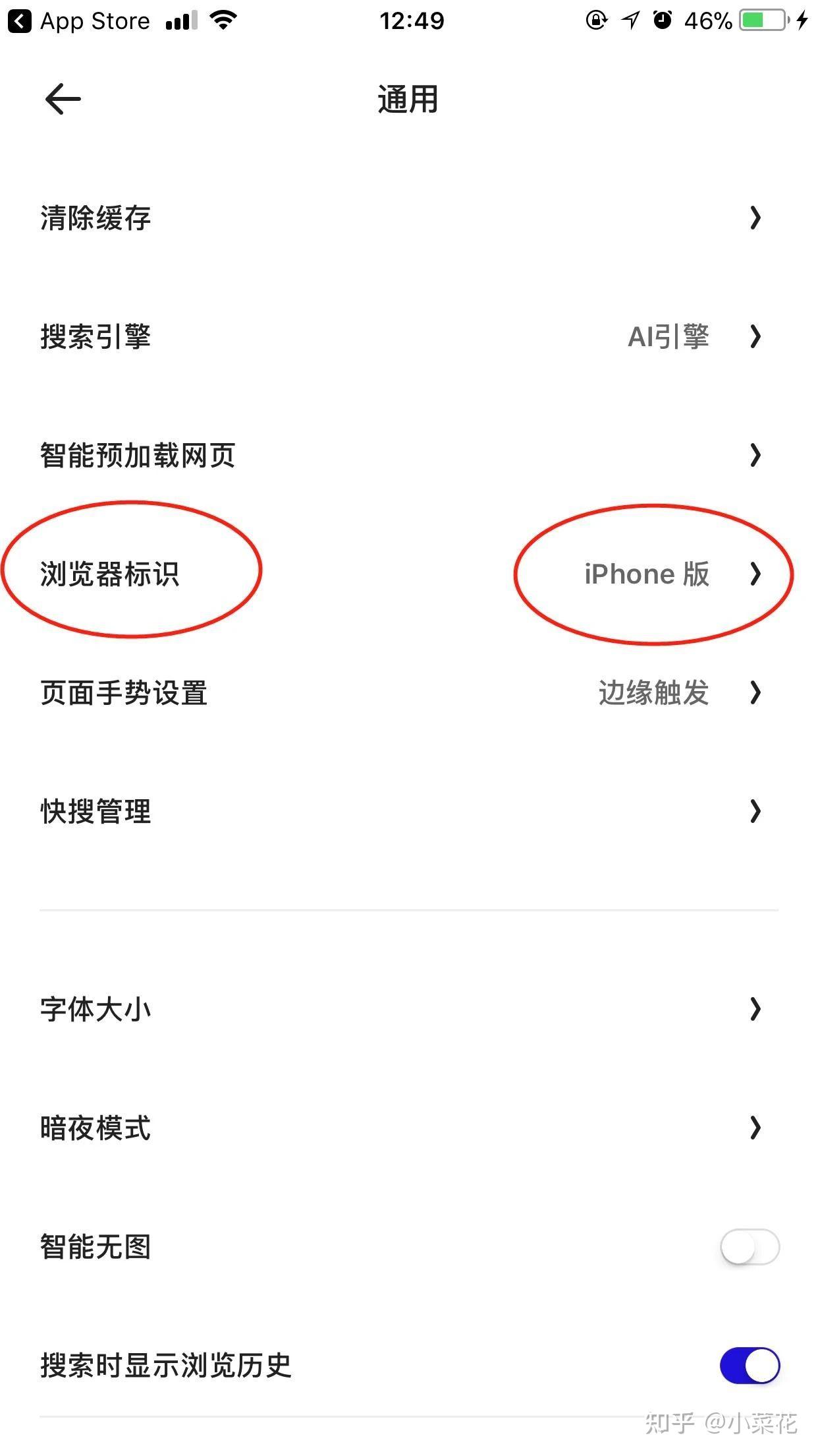 安卓端和上面的QQ浏览器一样的设置。因为还有很多用苹果的,这次网上找了个苹果的图片。