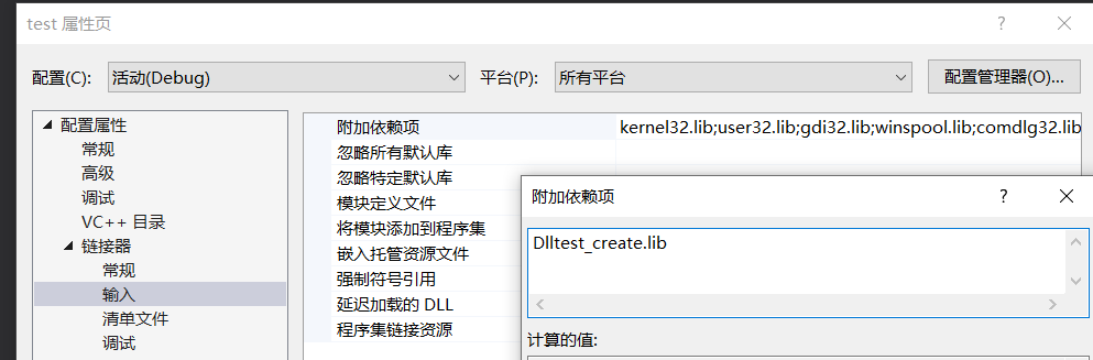 4>>在属性—链接器—输入—附加依赖项中添加我们拷贝过来的.lib文件