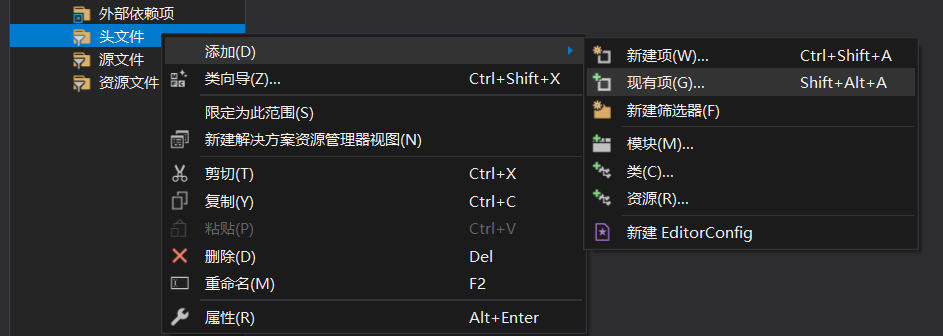 3>>将拷贝的头文件添加到空白项目中