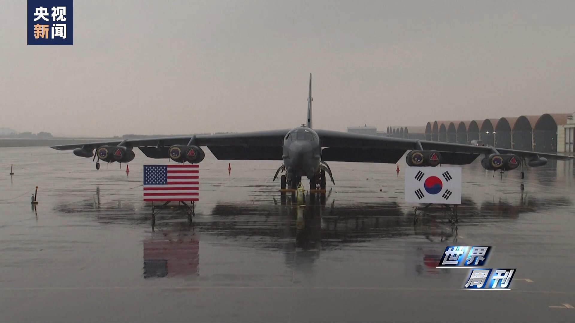10月17日,美国“三位一体”核打击空中平台B-52H战略轰炸机在韩国清州空军基地降落。