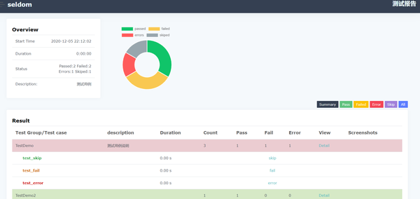 针对这种情况,网上已经有大佬帮我们优化了官方的HTMLTestRunner的测试报告模板并且直接兼容python3了,不需要重复造轮子了。并且也集成了邮件发送功能,感谢前辈无私奉献!
