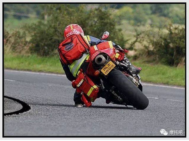 像John Hinds的摩托车救护员,必须背上必需的简单医疗器具,再以飞快的速度赶至现场,是相当不容易的,因此也非常受到车手们的尊敬,更是车手们比赛的信心来源。