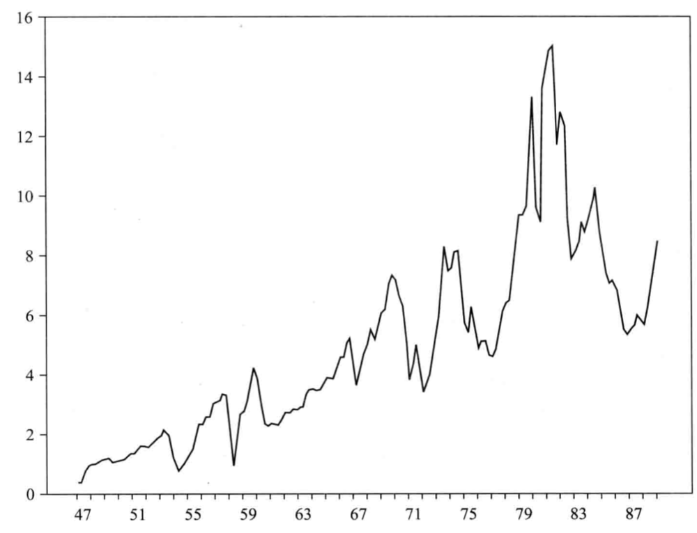 图1序列图显示序列开始上升,然后下降,此序列要么平稳,要么是一个随机游走,所以零假设自然是:序列是随机游走。此时可以使用模型2来开始检验(从正规步骤的步骤2开始)。如果序列是平稳的,显然均值不为零,为了和备择假设对应,所以用模型2开始检验。图中显示序列均值并不为零,所以步骤1是不必要的,可以不做。使用模型1的原因是模型1比模型2功效更高,为了避免犯二类错误才进一步进行模型1的检验,如果模型2不能拒绝零假设,而序列均值非零,模型1检验结果不可能会拒绝零假设,所以模型1的检验没有必要。