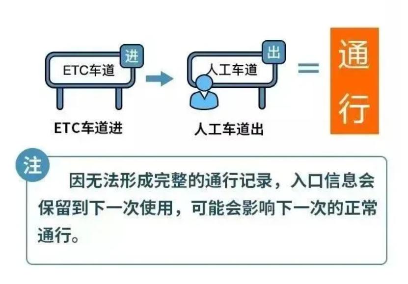 通过人工通道驶入高速的车辆,不建议在ETC车道下高速。因没有入口信息,出口栏杆机不会抬杆,只能折返至人工车道驶出,建议各位车主尽量选择同一类型车道(即在哪个通道上的就在哪个通道下),以免造成不必要的麻烦,尤其是ETC车辆。