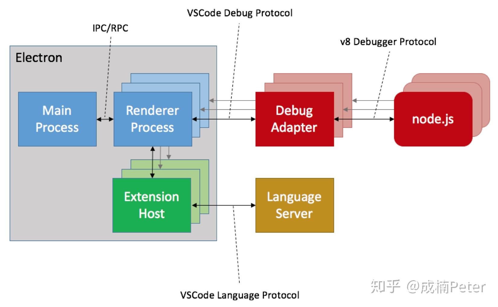 7、LSP和DAP像两座桥梁,连接起语言和调试服务,它们都运行在插件进程中。
