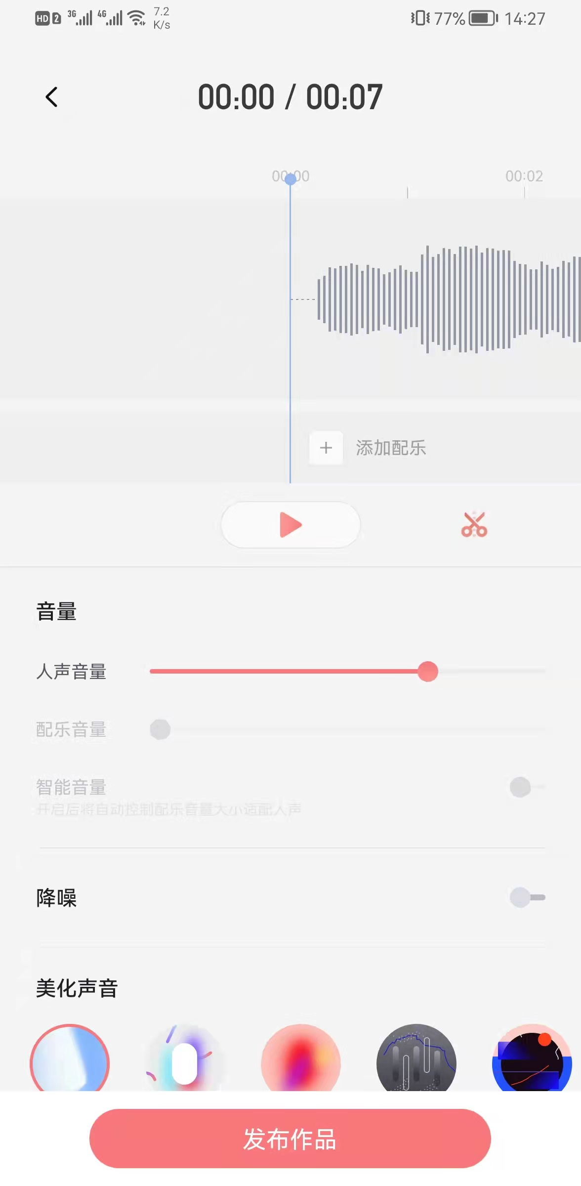 手机录制音频建议你使用喜马拉雅录音工具,里面的功能很多,页面简单,很容易使用,里面自带了读稿、录音、美化、降噪、声效、剪辑、音乐等功能。