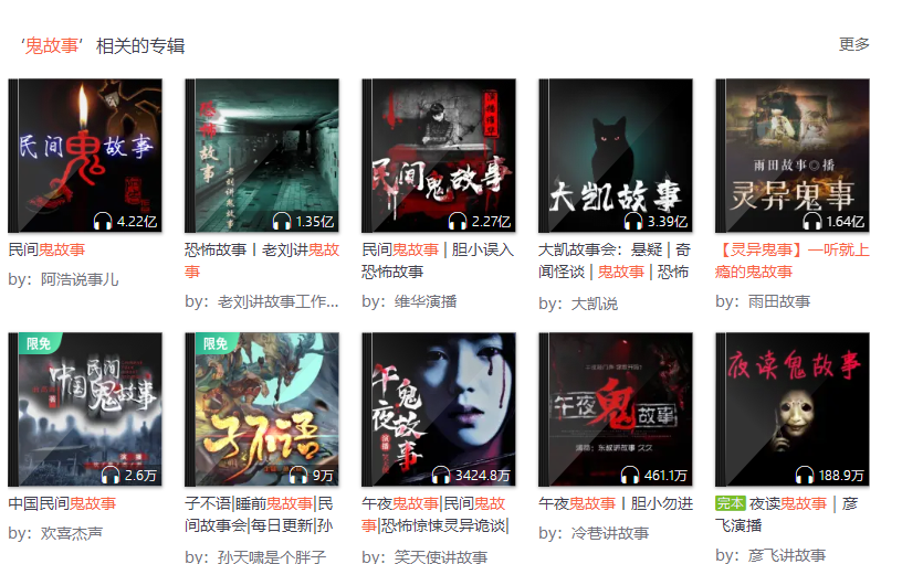 以上这几个领域比较热门,而且不怕没有素材,尤其是鬼故事,现在的年轻人喜欢寻求刺激,晚上听个鬼故事啥的,很容易就着迷,而且网络上有大量素材可以让你持续的做下去。