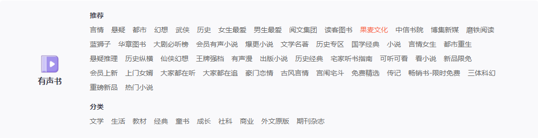 有声书的组成是由这几个元素组成的:内容文案、音效音乐。