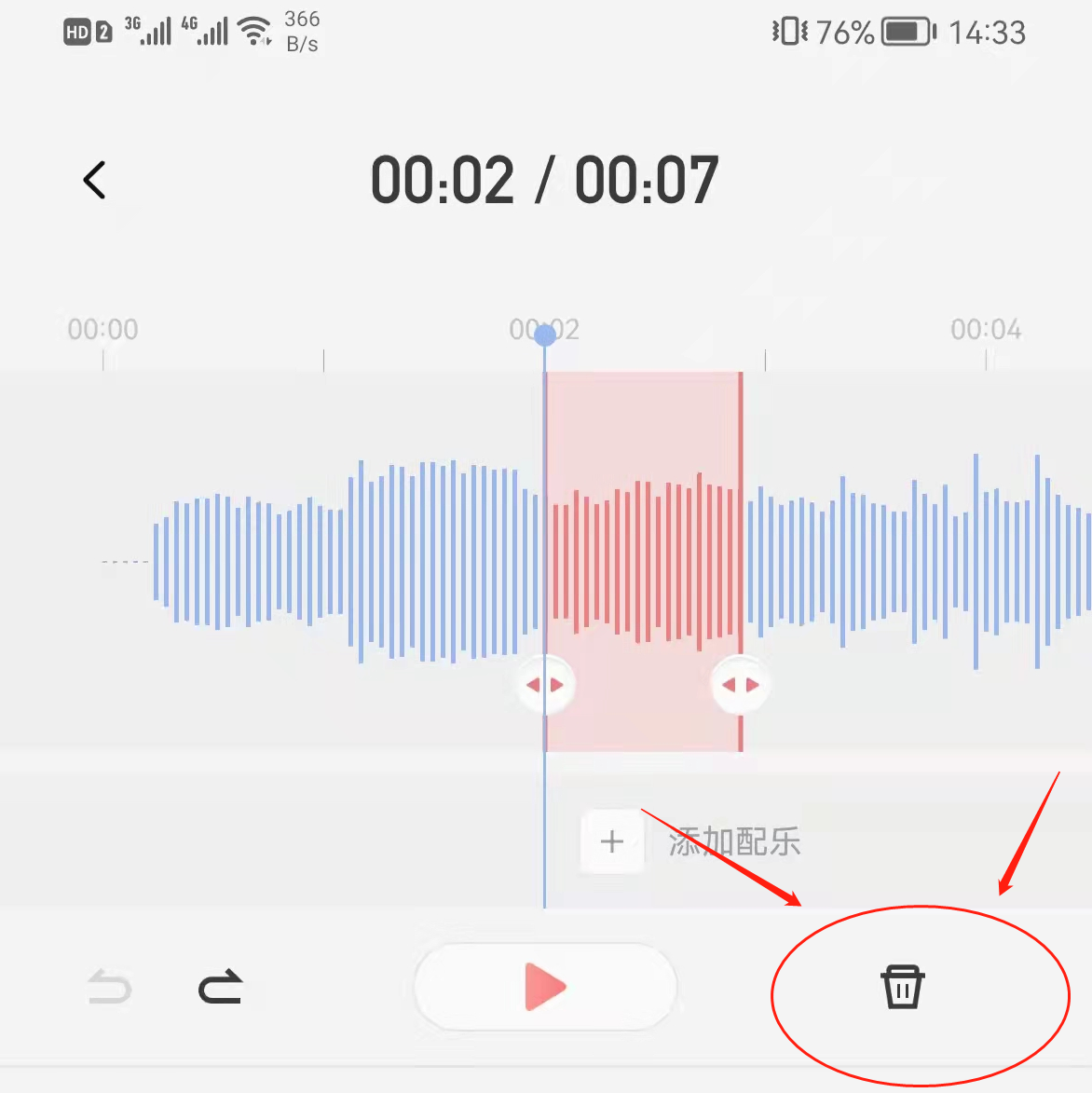 这个功能就是帮你把录错的内容,或者不需要的内容给删除掉,点击“分割”然后把不需要的内容删除。