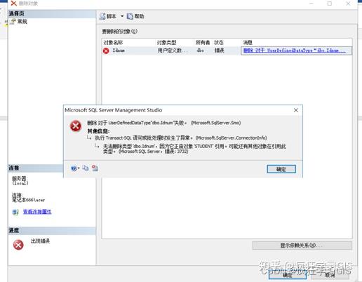 (2) 发现删除出现问题,认为是由于数据库表中有列仍然在使用这一数据结构,故需先将上述数据结构从表中移除再进行删除操作,输入的SQL语言为: