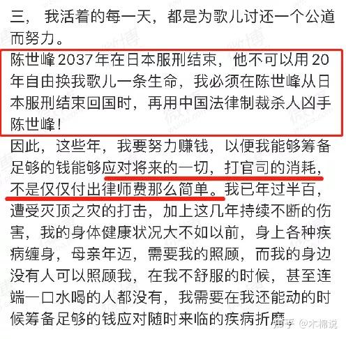 不仅把钱用于养活自己和母亲,更要用于打官司和请律师的消耗。