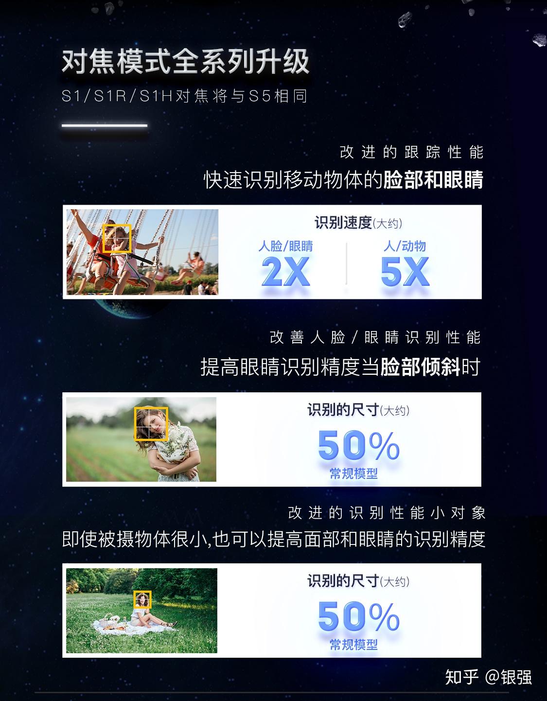 首先是S1、 S1R、 S1H对焦全面升级,性能均翻倍。LUMIX最先进的对焦技术和新一代LUMIX S5的性能,也将在S1R、S1H和S1上得到体现。升级后的自动对焦在探测人类及其运动方面有明显的优势。除了眼睛、脸、身体,头部还通过实时检测技术单独识别,提供更精确的聚焦。即使被摄者快速移动、背对镜头、倾斜头部或远离镜头,相机也会持续跟踪被摄者。另一方面,DFD技术的改进增强了AFC,这也使用户能够跟踪小的或快速移动的物体,以清晰的焦距捕捉它们。