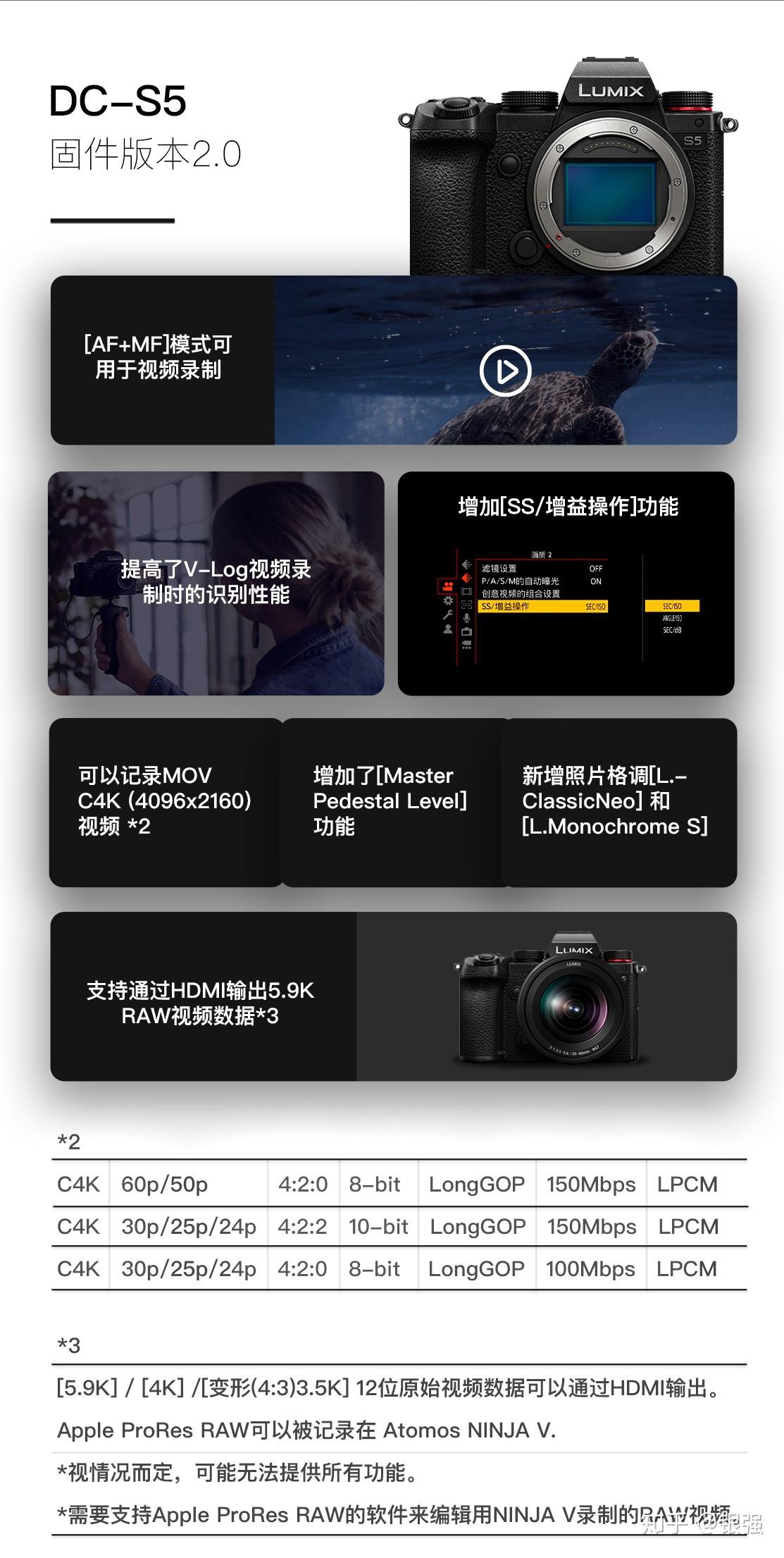 1)【AF+MF】可用于视频录制;提高了V-Log视频录制时的识别性能;