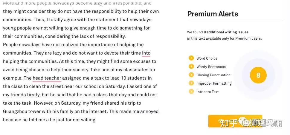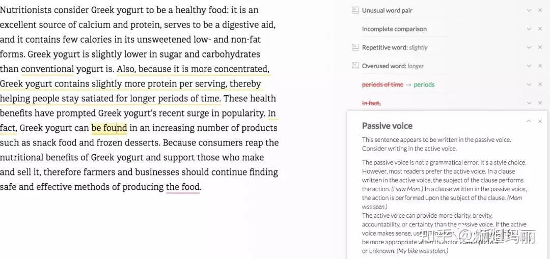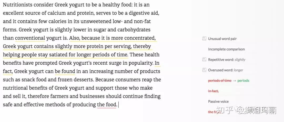 我们来看看grammarly对这类写作给出的建议。