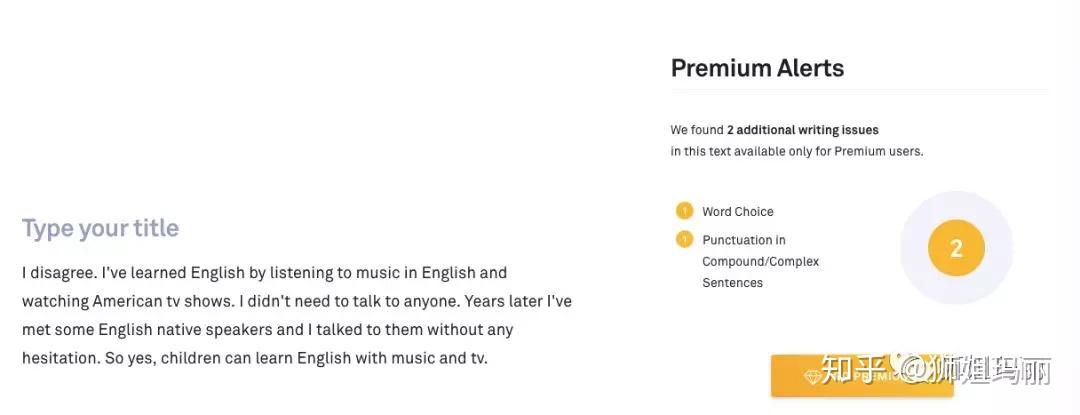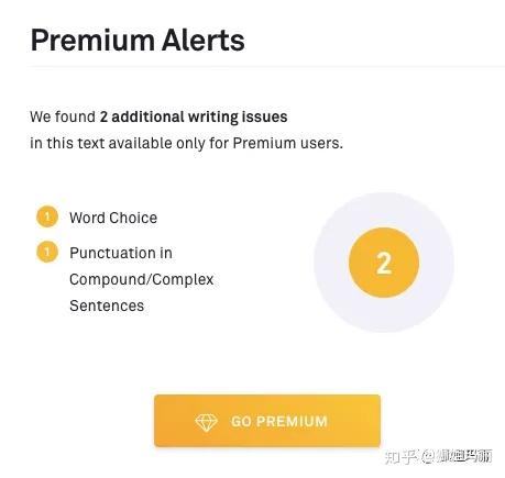 不过,gramamrly很快就给出了alert, 告诉我们还有两处需要修改的,一个是word choice选择问题,一个是punctuation标点问题。