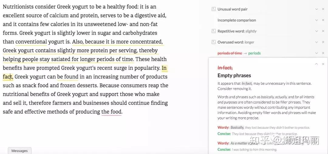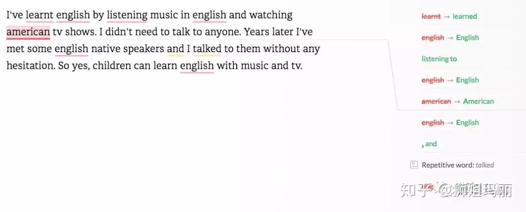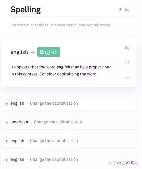 有一点比较好的是,除了直接删除和拼写矫正之外, 还有一些关于语法和写作规范的建议。