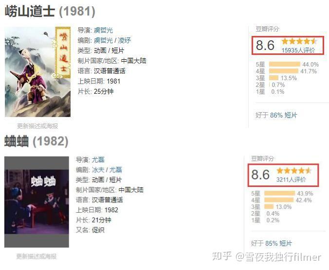 在内地,由上海美术电影制片厂引领的国产动画片,依旧代表着中国乃至东方动漫的最高成就。轰动一时的 《崂山道士》《蛐蛐》这两部木偶动画均根据《聊斋志异》的相关篇章改编 ,在豆瓣评分纷纷达到8.6的高分,口碑惊人。