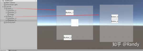 补充一下:Hierarchy菜单,UI物体中越靠下的物体,才是越接近最上层的