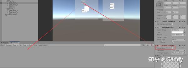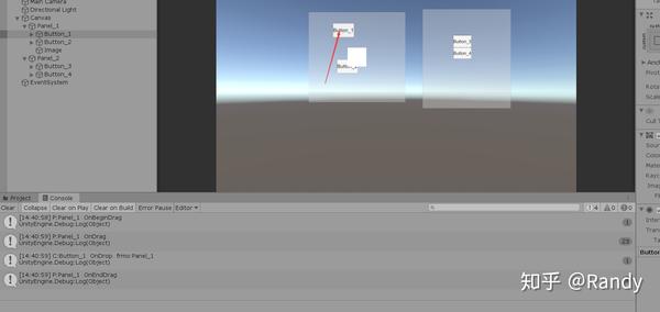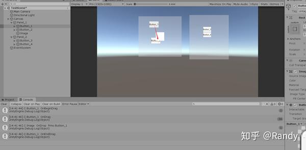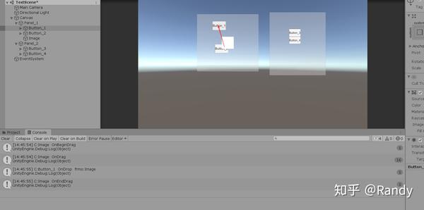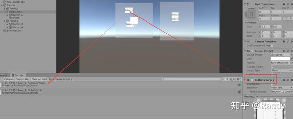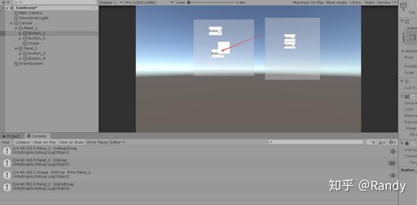 针对UI物体时,场景中应创建EventSystem,UI物体的RectTransform需要有一定的宽高