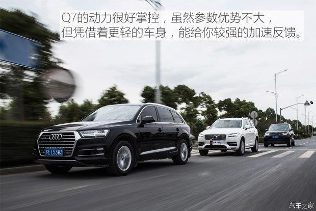 奥迪Q7则体现自己较强的综合表现,不论是外观内饰还是动态表现,它都找不出什么缺点,是三台车中相对稳妥的选择。而路虎发现则有着很强的个性,它不仅仅是一台豪华中大型SUV,相比上一代车型,它在公路方面已经提升很多了,在满足日常代步需求的同时,融入了更多的越野属性,它能够带你去前两台车无法到达的地方,更像是一个玩伴一样。(文/图 汽车之家 彭储文 曹昊旻 摄 祁子鑫 )