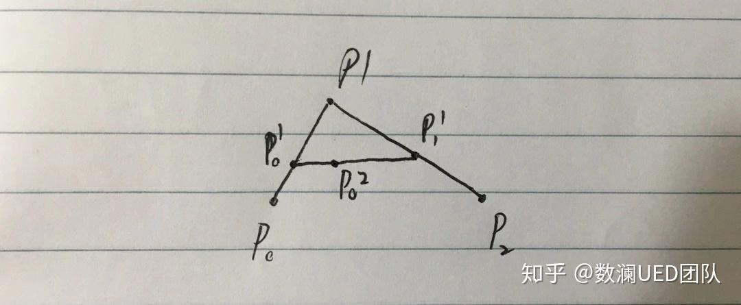 下图是一根二次贝塞尔曲线的绘制过程。因为轨迹已知,所以在各个阶段的起始点都是可以通过