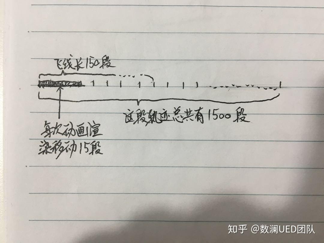 由于之前已经声明好该路径轨迹拆分成多少段了,所以在此我们取个巧定义飞线的长度是其中