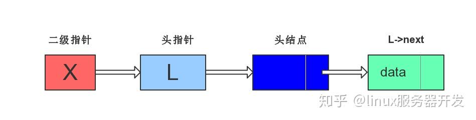 用框图表示链表中二级指针或者一级指针的使用更加直白了。