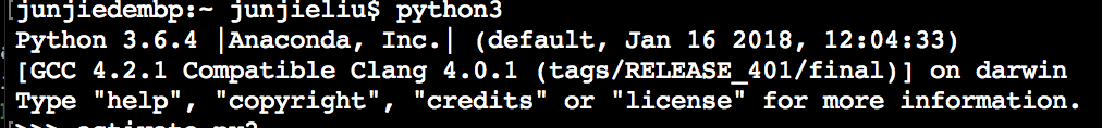 Python 3.6.4 |Anaconda, Inc.| 即为anaconda3为系统默认的了。