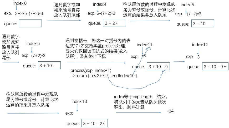 那么遍历完数组,生成两个辅助数组之后,就可以开始正式的求解流程了: