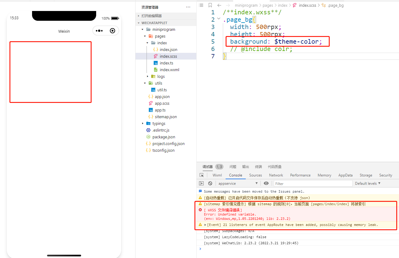 小程序ts+sass模板中,在app.scss中定义的sass变量在别的sass文件中找不到,引用还报错,正常情况下app中的代码应该可以全局调用的!
