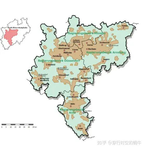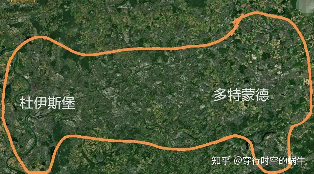 注:莱茵-鲁尔城市群地图,中间深色区块是城市区,可以看到鲁尔区已经形成一个整体大都市