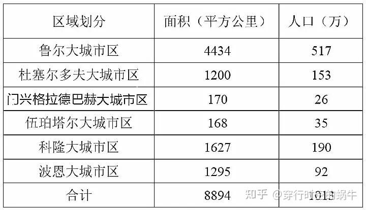总之,德国不是没有大城市。相反在欧洲国家中,德国的大城市数量反而是比较多的。德国的领土面积仅与我国的云南省差不多,人口数量与江苏的常住人口相当。按自然城市算拥有七、八个大城市区,还有鲁尔大城市区这样的特大城市区,这绝对不算少,也不算小了。不过德国最大的自然城市鲁尔城市区也刚跨过特大城市的门槛,因此德国没有像伦敦、上海、北京这样的超大城市倒是真的。