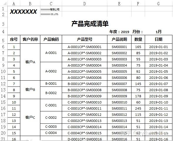 指目标列表,即B列所有客户名称的列表,或者C列所有产品编码的列表,这些列表中有很多重复项。我们就根据这些重复项的重复次数为依据来判断单元格合并的起始行。