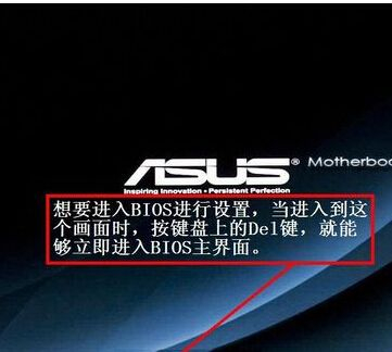 1、同样的将制作好U核心启动盘的U盘插入笔记本或台式机的USB接口中,ASUS华硕台式机或ASUS华硕笔记本一开机就按屏幕最下方提示的“DEL”键,如下图所示:
