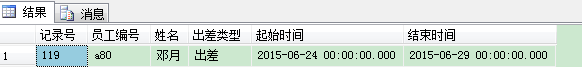 insert into 出差表(记录号,类型名 ,员工编号,姓名,外出类型,起始时间,结束时间)values('119','出差', 'a80','邓月','出差',2015-06-24,2015-06-29)
