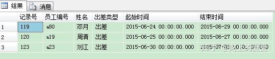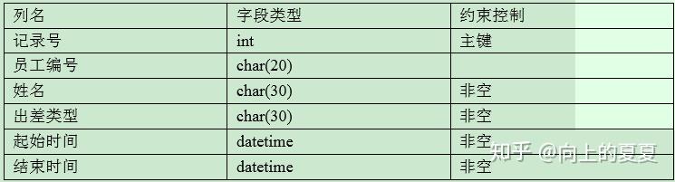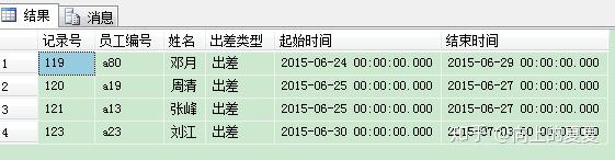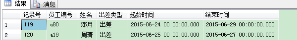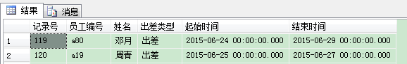 出差表(记录号,员工编号,姓名,出差类型,起始时间,结束时间)