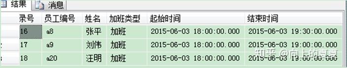 加班表(记录号,员工编号,姓名,加班类型,起始时间,结束时间)