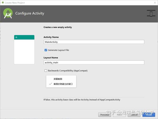 5.设置Activity 的名称和Layout的名称,一般自动生成,如果需要可以在这里进行更改,