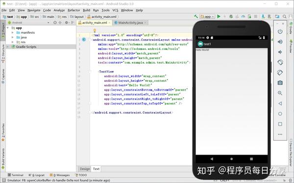 通常建一个项目,会在Activity_main.xml里自动生成一个文本显示框textView,这个是默认的,你运行之后,会在虚拟机上出现一个hello world 的字段,通常不用的话把它删掉即可。