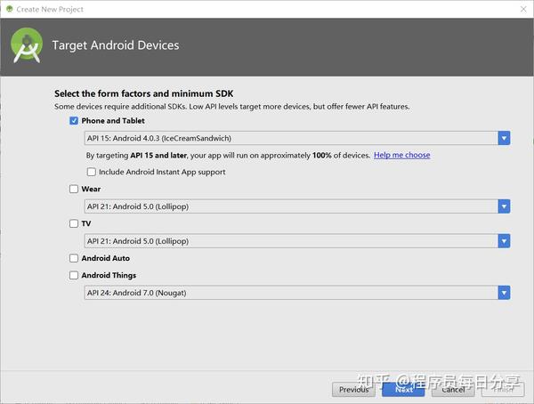 3.选择Android 虚拟机的版本,版本越低运行起来越快,其他的无需勾选。