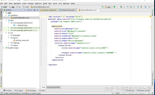 6.这是Android项目建完之后的样子,三个主要的文件:主配置文件:AndroidManifest.xml,