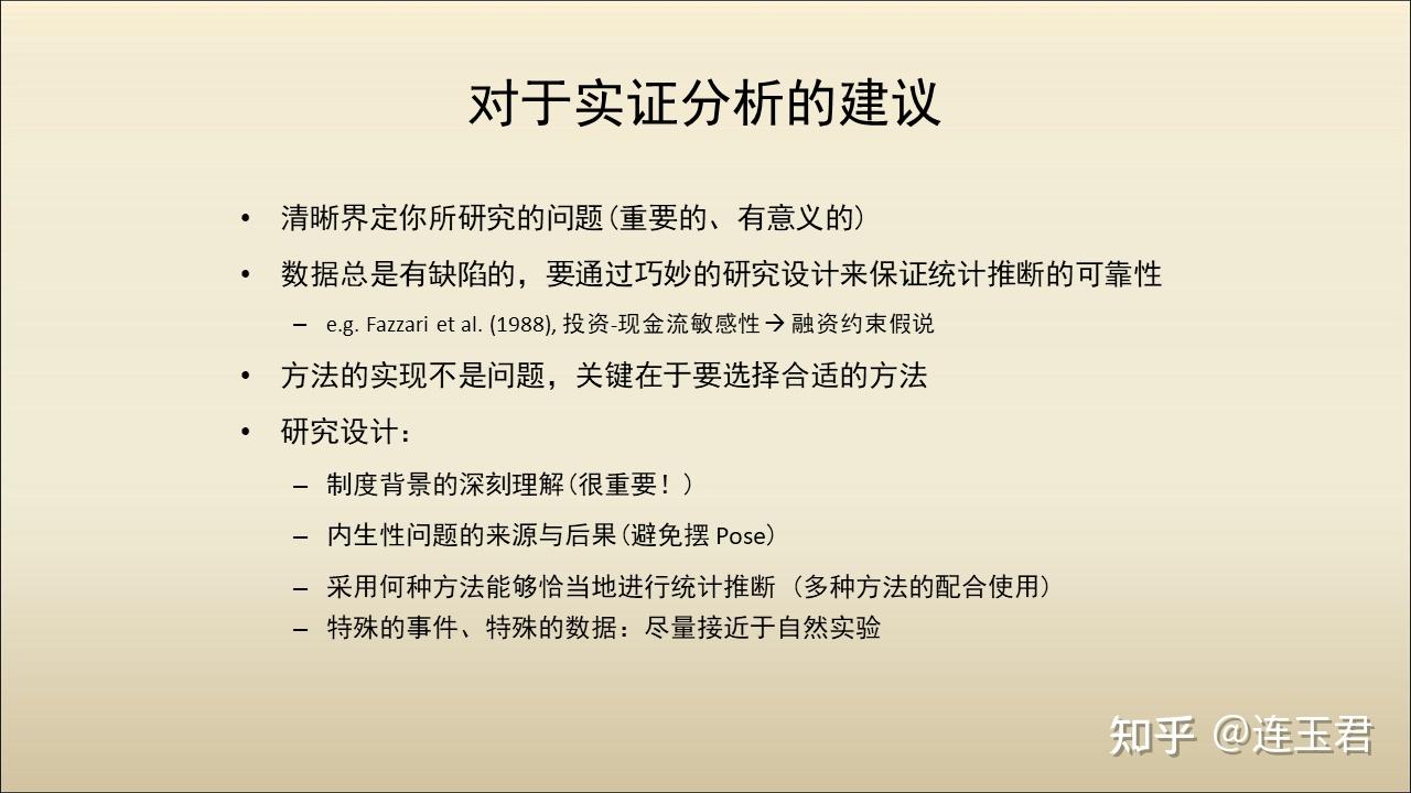 「编者按」 这份幻灯片的第一版制作于 2014 年。当时,山东大学的曹廷求教授邀请我参加公司治理论坛,做一个 20 分钟的专题报告。分享的嘉宾们都是我的前辈,让我倍感压力,只好剑走偏锋,讲一下公司治理研究中面临的棘手问题:「公司金融中的内生性问题:来源及处理方法」。内容涉及:IV-GMM 估计、DID、固定效应模型、PSM、SCM、空间计量等。