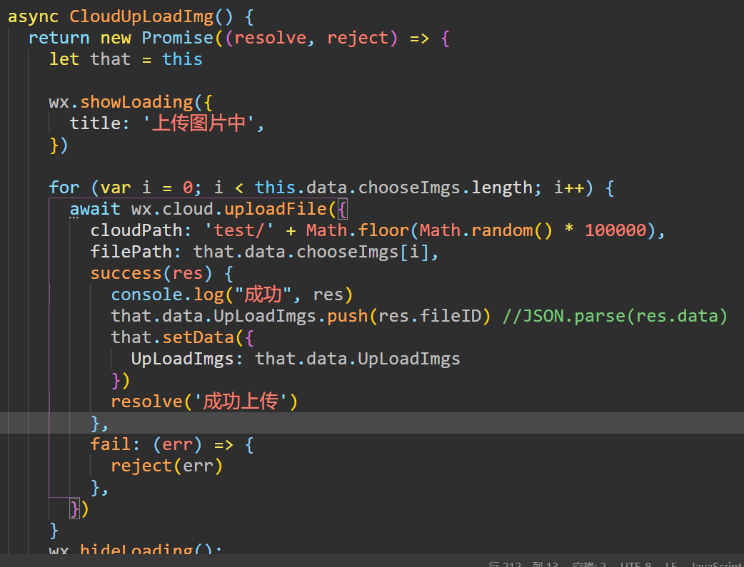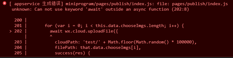 函数外面也有async,为什么在里面的wx.cloud.uploadFile前面不能用await呢?