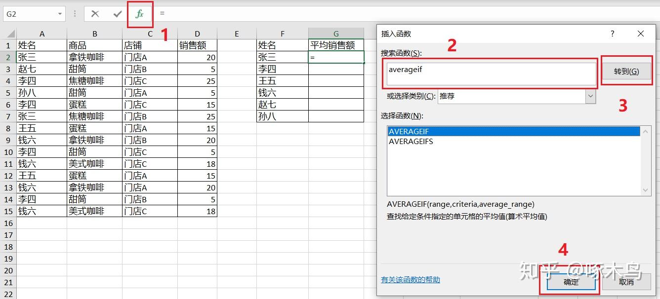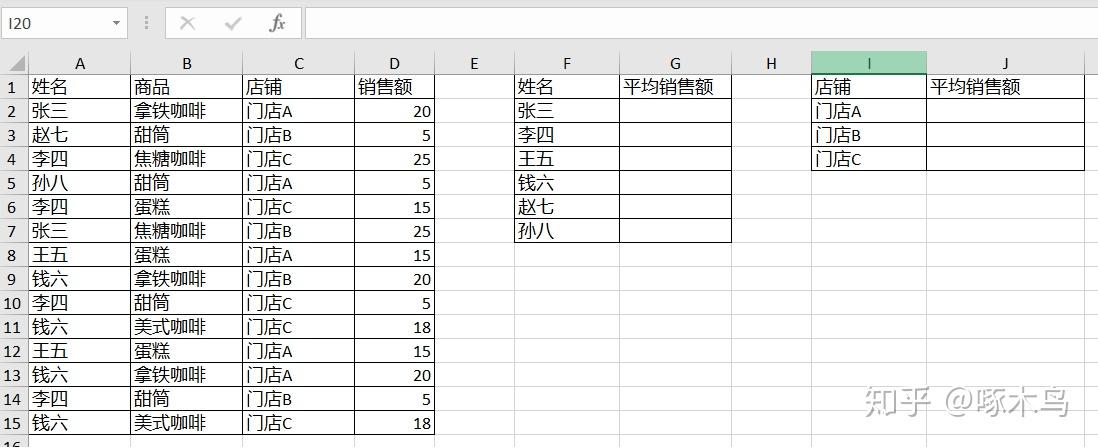 AVERAGEIF用于 计算某个区域内满足给定条件的所有单元格的平均值(算术平均值) 。我们可以先看一个使用场景,某个咖啡店的销售统计表如下所示,需要分别从顾客维度和店铺维度统计 平均销售额 :