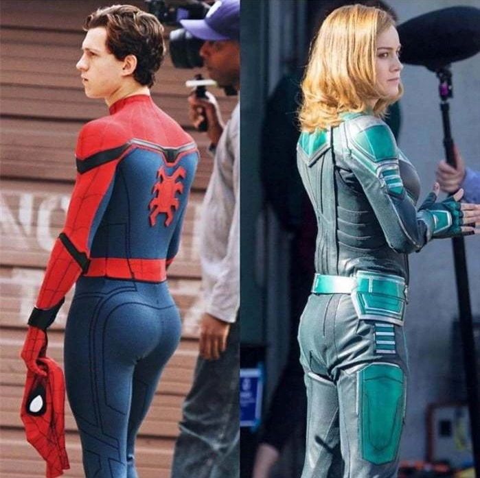 左荷兰弟饰演的蜘蛛侠,右拉尔森饰演的惊奇队长